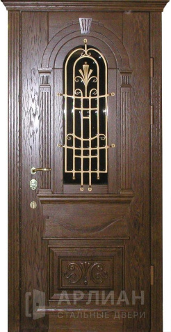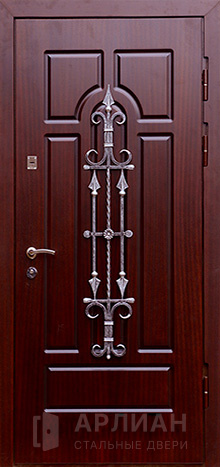 Железная входная дверь для загородного дома с ковкой №18