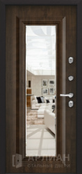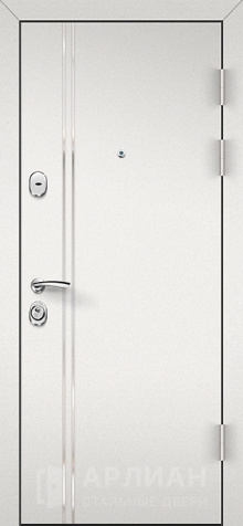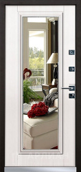 Белая дверь входная металлическая с зеркалом внутри и усиленными петлями №76