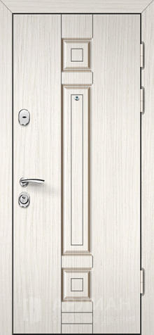 Стальная дверь белого цвета с панелью МДФ и молдингом №96