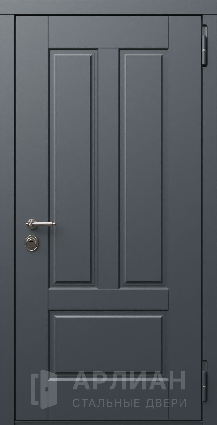 Дверь металлическая с порошковым напылением серого цвета снаружи №18