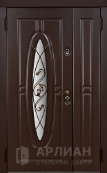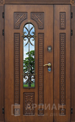 Двустворчатая входная дверь в частный дом со стеклом и решеткой №18