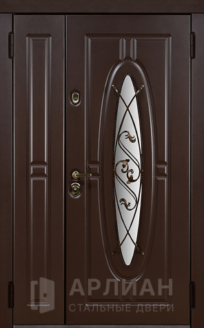 Двухстворчатая металлическая дверь коричневая с отделкой МДФ №7