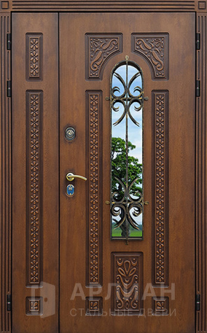 Стальная двухстворчатая дверь остекленная с ковкой снаружи №14