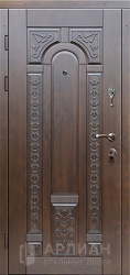 Входная дверь арочная в квартиру с коричневой панелью №62