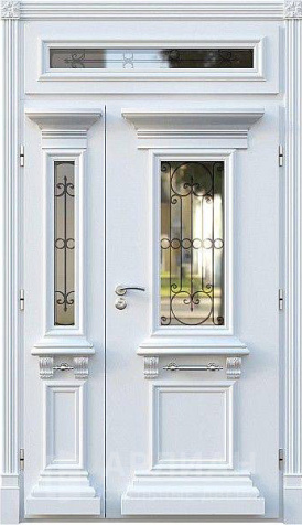 Белая входная дверь со стеклом двупольная белая патина №77