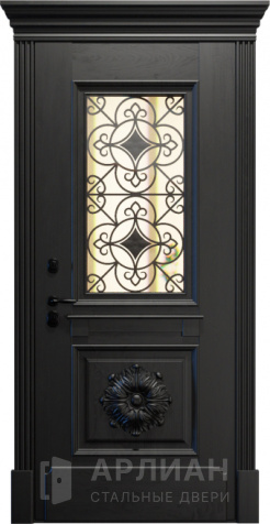 Утепленная входная дверь для коттеджа с кованными элементами №28