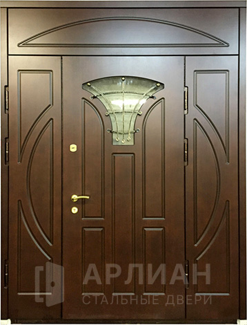 Теплая металлическая дверь с фрамугой входная №435