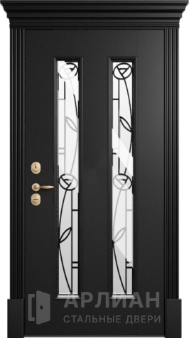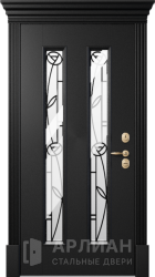 Со стеклянными вставками металлическая дверь для загородного дома№6