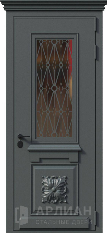 Входная дверь со стеклом и ковкой №54